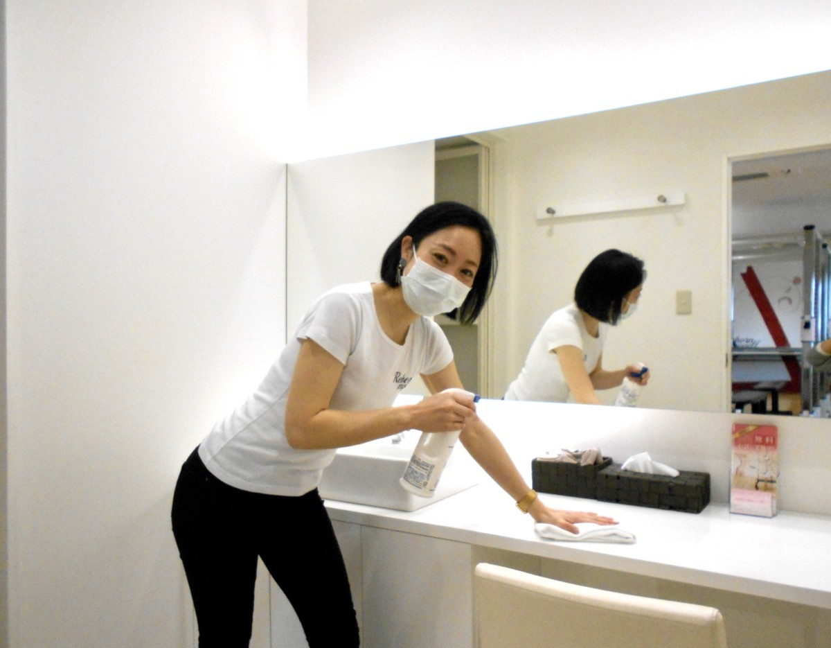 (パウダールーム内の消毒を徹底しております。)
