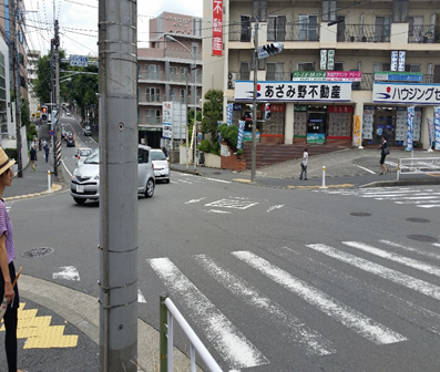 しばらく進み十字路を、あざみ野不動産側へ渡る