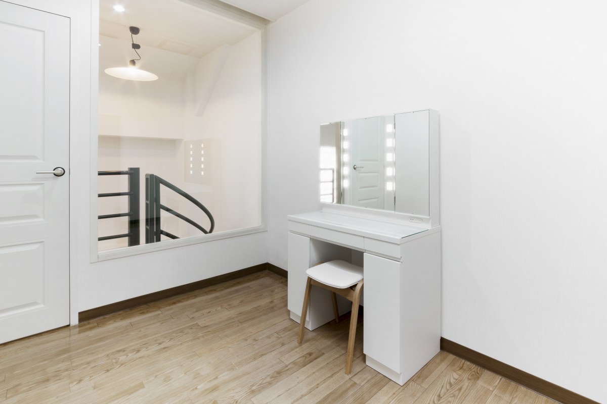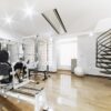 大きな鏡があり、トレーニング中の動きをチェックしながらパーソナルトレーナーとトレーニングに励みます。白を基調とした女性らしい空間です。