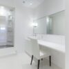 真っ白で清潔感あふれるパウダールーム。
