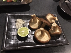 焼きシイタケはお塩でいただきましたが素材の味が際立っていてとても美味しく