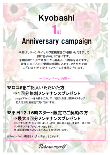 京橋店限定!祝☆移転1周年記念キャンペーン