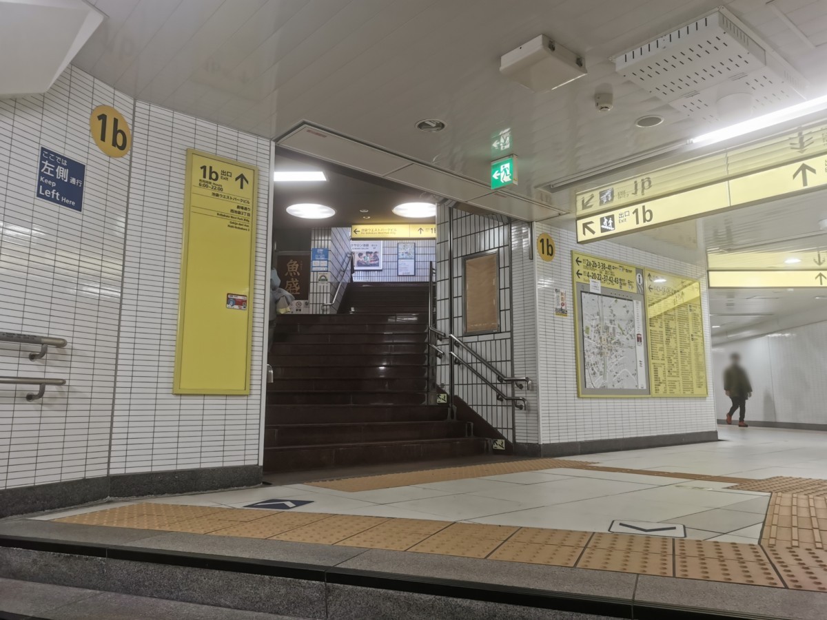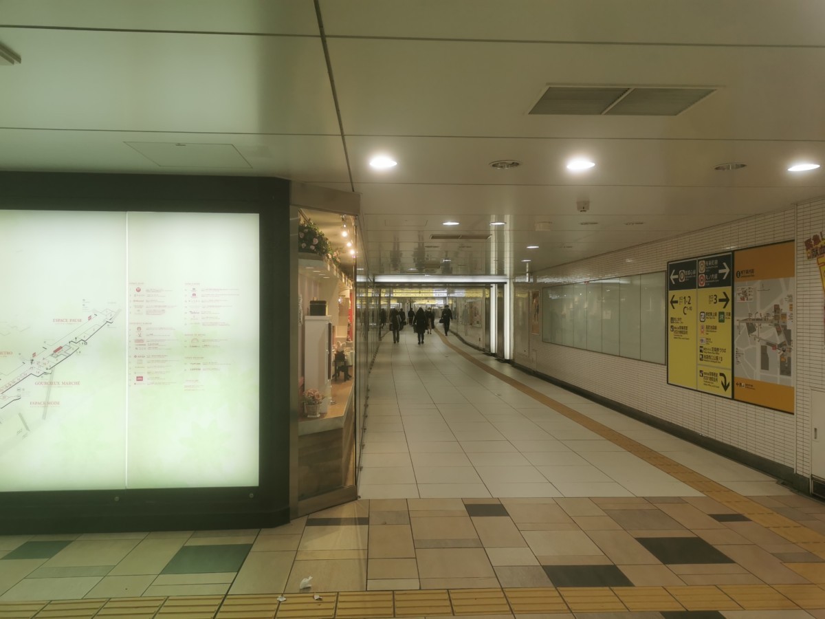 エスカレーターを下り、出口1を目指して1本道を進みます