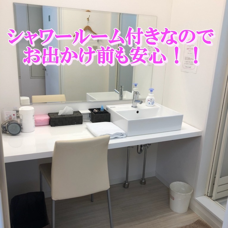 パウダールームには、シャワーも付いているので、お出掛け前も安心✨