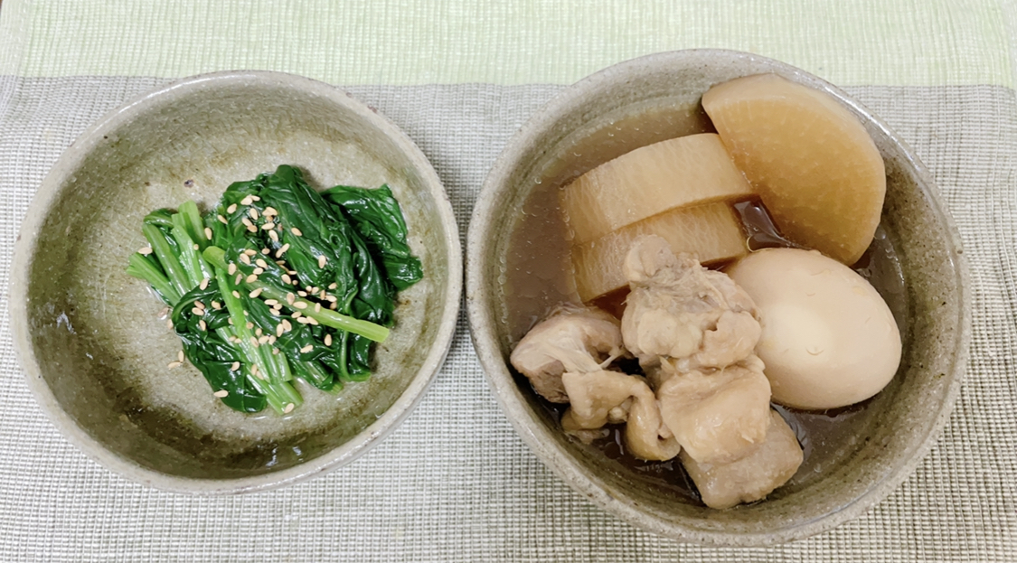 そして1か月後にお皿が届き、早速お皿にさっぱり煮とほうれん草のおひたしを盛り付けました‼︎