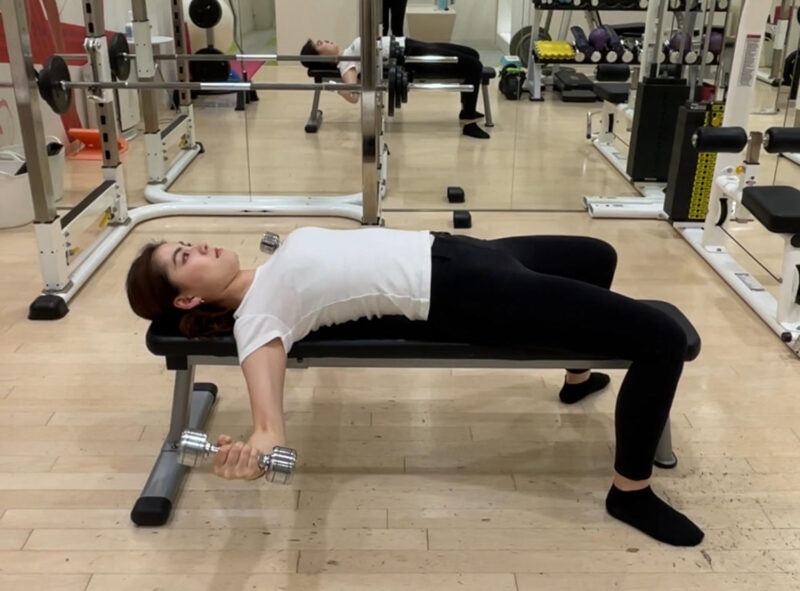 本日はデコルテラインをスッキリさせる『ダンベルフライ』を紹介します!!