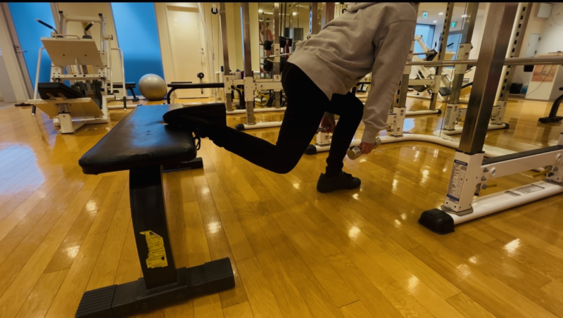 今回ご紹介するトレーニングはブルガリアンスクワットです!