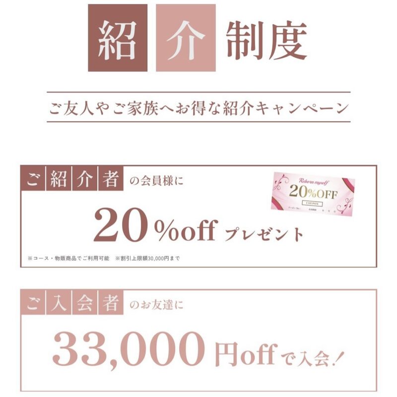リボーンマイセルフでは「ご紹介キャンペーン」を行っております😆✨