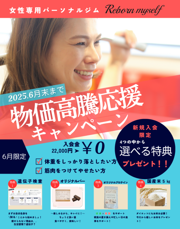 リボーンマイセルフは全国30箇所以上で女性のためのダイエットに真剣に向き合い、実践し続けて10年以上。女性ならではの悩みに寄り添った続けやすいパーソナルジムです。