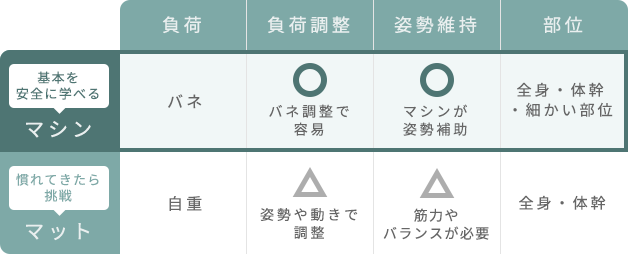 マシンピラティスはマットのピラティスと比べてリフォーマーを使うことに