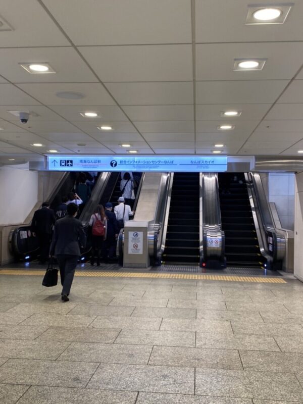 【5】南海電車改札前のエスカレータ右隣になんばスカイオのエスカレータがあるので、そこを上ると店内に入れます。