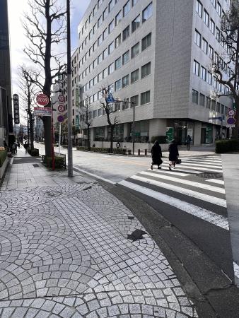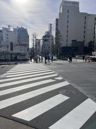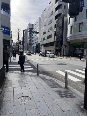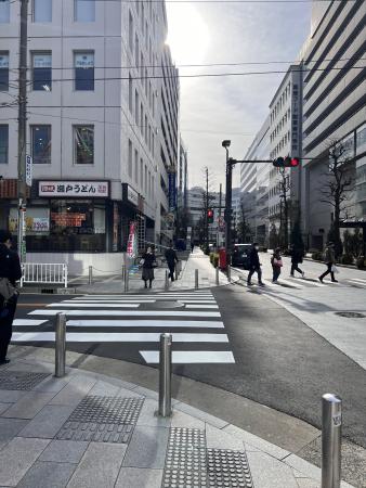 【6】三つ目の十字路で横断歩道を渡り左に曲がります。