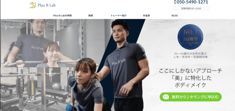 Plus B Lab(プラスビーラボ)池袋東口店は、女性向けのパーソナルトレーニングジムで、キッズスペース完備で忙しい母親にも最適です。トレーニング、エステ、遺伝子検査を組み合わせた美ボディメイクが可能です。