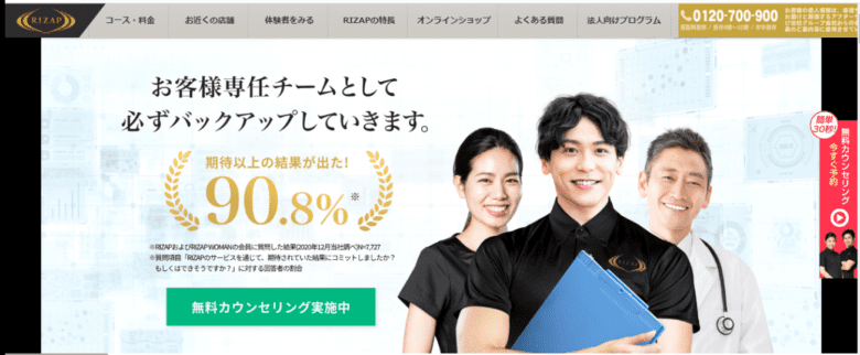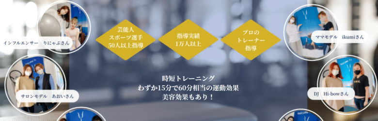 特徴は、時短トレーニングで高い運動効果を得られる点と、芸能人やスポーツ選手の指導実績があること。無理な食事制限は行わず、健康的にリバウンドしない身体づくりを目指せます。料金プランも幅広く、自分に合ったプランを選べます。