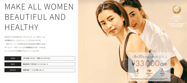 UNDEUX SUPERBODY天王寺店は、女性専用のパーソナルトレーニングジムで、美しい体作りに特化したサービスを提供しています。脚やせや産後ダイエットなどに特化しており、女性のためのアメニティが充実しています。
