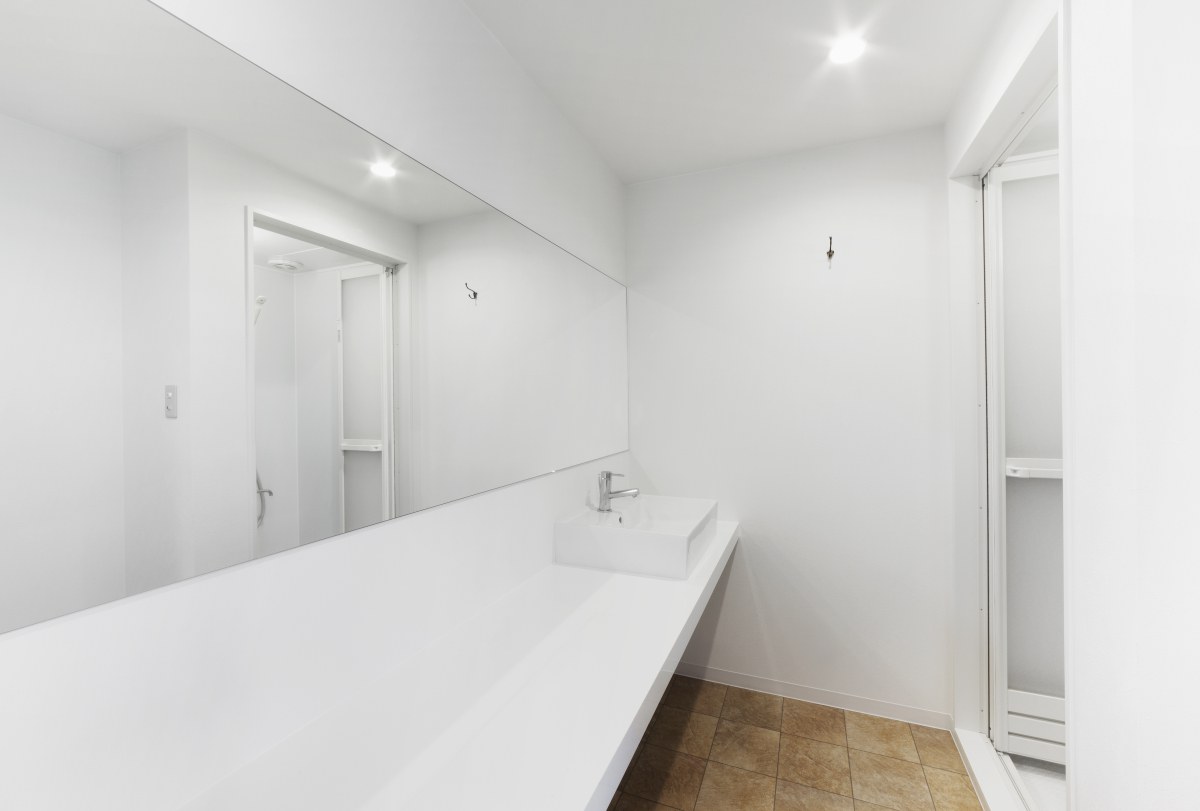 真っ白で清潔感あふれるパウダールーム。個室でお一人お一部屋ご利用いただけますので、周りを気にせずゆっくりとお着替えができます。シャワールームも併設していますので、お仕事前後のご利用、プライベートの予定の合間でもお気軽にご来店いただけます。