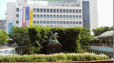 銅像を正面にして、左脇の歩道橋を小田急百貨店に向かい真っ直ぐ渡ります。