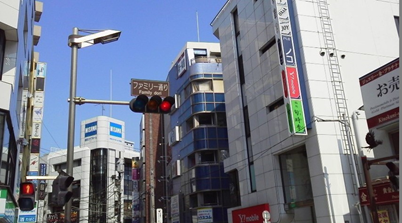 直進したら、一つ目の信号(ファミリー通り)を渡り、更に真っ直ぐ進みます。