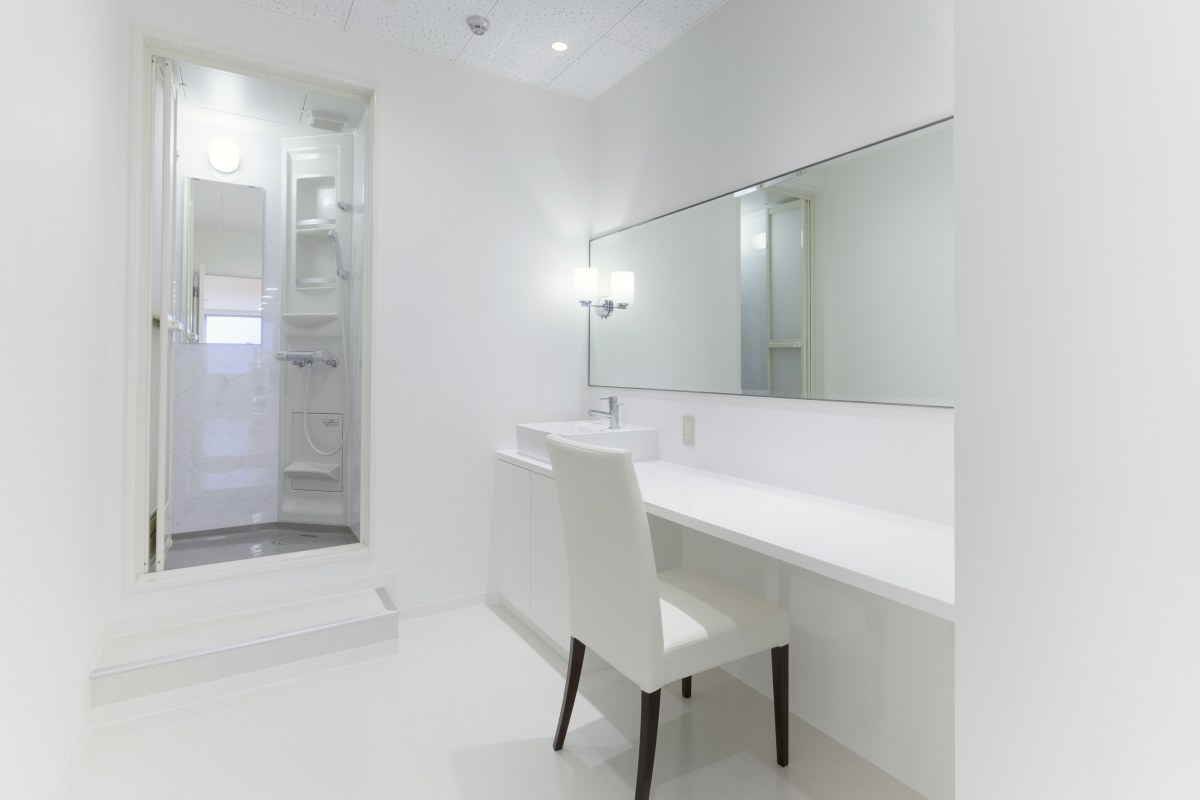 真っ白で清潔感あふれるパウダールーム。