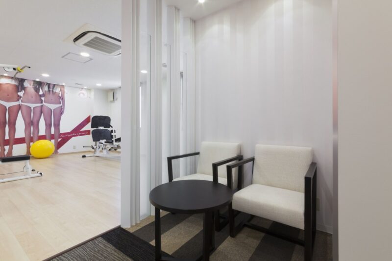 カウンセリングやお客様とプライベート空間でお話をしたいときに利用します。ダイエットのお悩みを話す空間は、音楽が入らず、他の方の目線が気にならない特別な空間です。